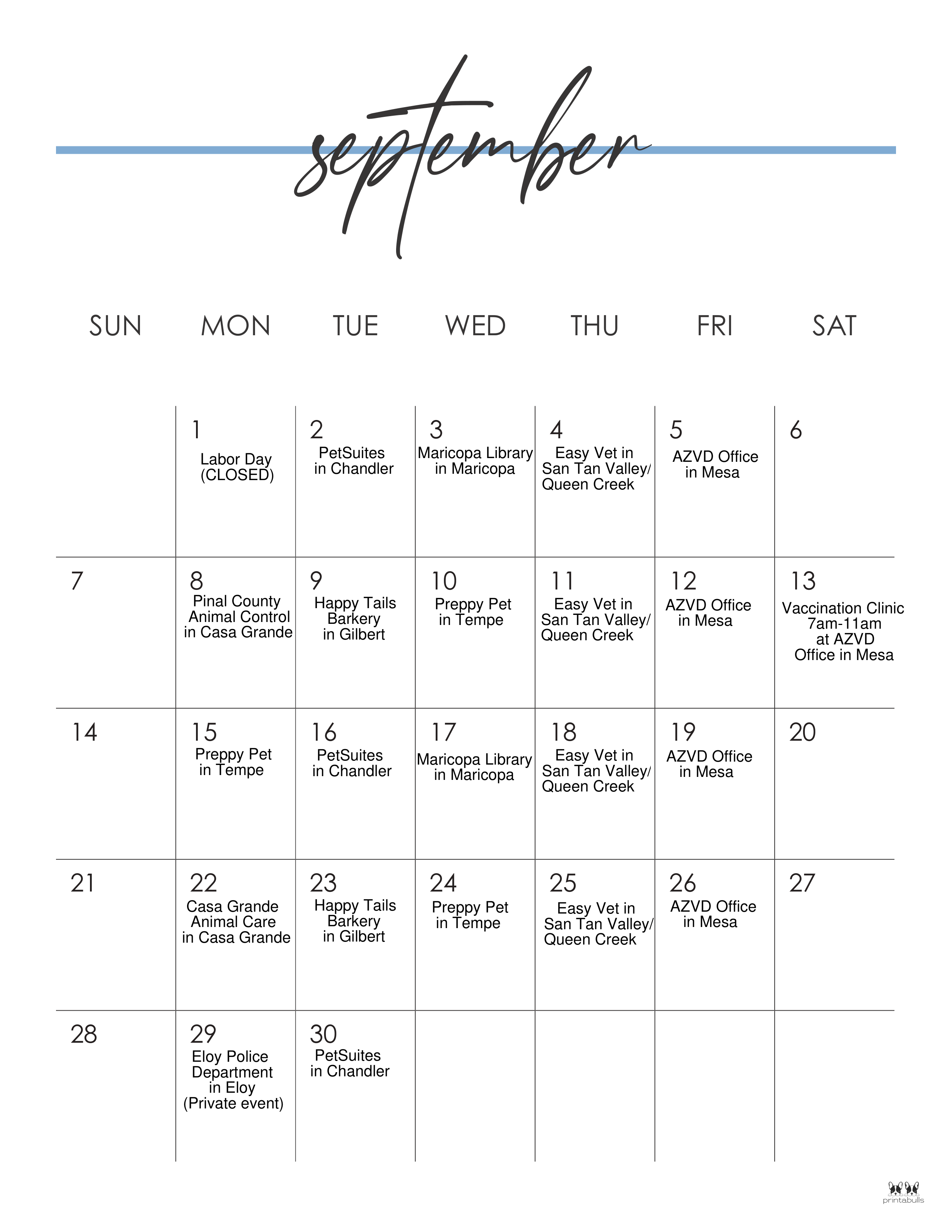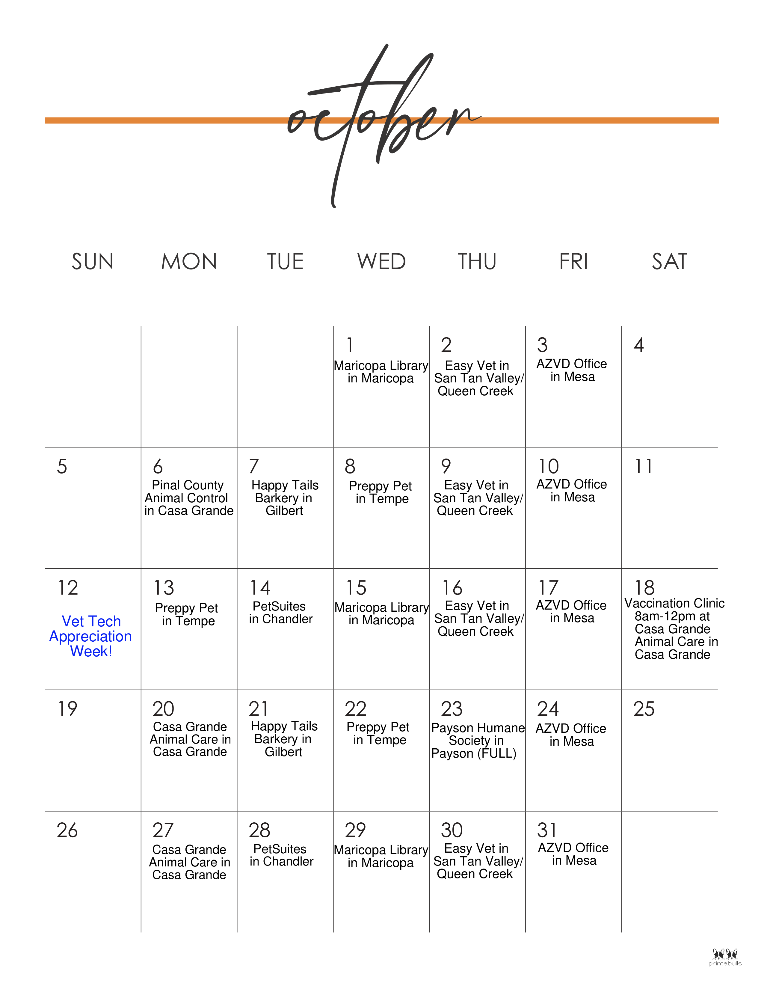AZ Vet Direct offers low-cost vaccines for your pets. We provide the convenience of a mobile office so that we can come to your area. Please see our monthly calendars for more details on our events.
